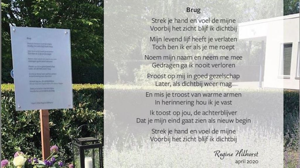 Ik schrijf ook in opdracht. Voor het Crematorium Twente schreef ik bv. ten tijde van Corona een speciaal gedicht bij de Corona-gedenkplekken.