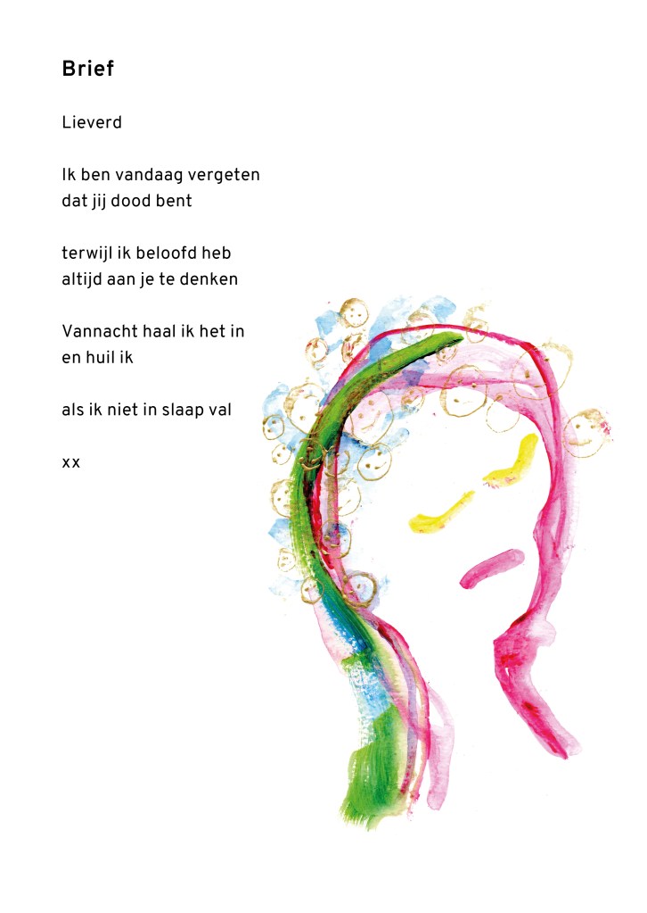 Dit gedicht komt uit de troostbundel ‘Hoe zeg je dag als je iemand niet kan missen’ (illustratie: Lies Koning) en is tevens opgenomen in de bundel “Doodgewoon gaan hemelen” uitgegeven door Plint